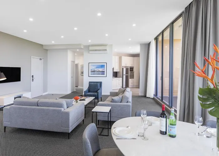 Adina Apartment Hotel Sydney Airport tilbyder indkvartering 6 km fra Allianz Stadion med en værdiboks og bagageopbevaring. Det ligger i Maskot område, 5 km fra centrum af Sydney.